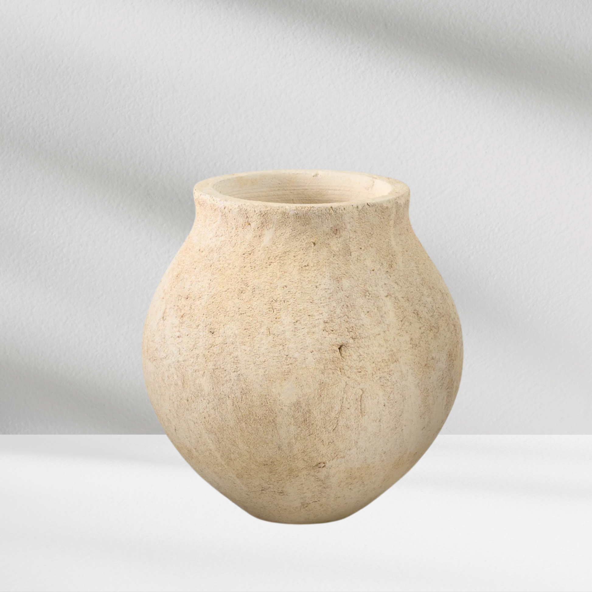 The Sahara Deco Vase This piece portrays the warm feel of vintage ceramics. Its soft, aged sand tone and naturally weathered patina evoke the serene, time-worn beauty of ancient stoneware.