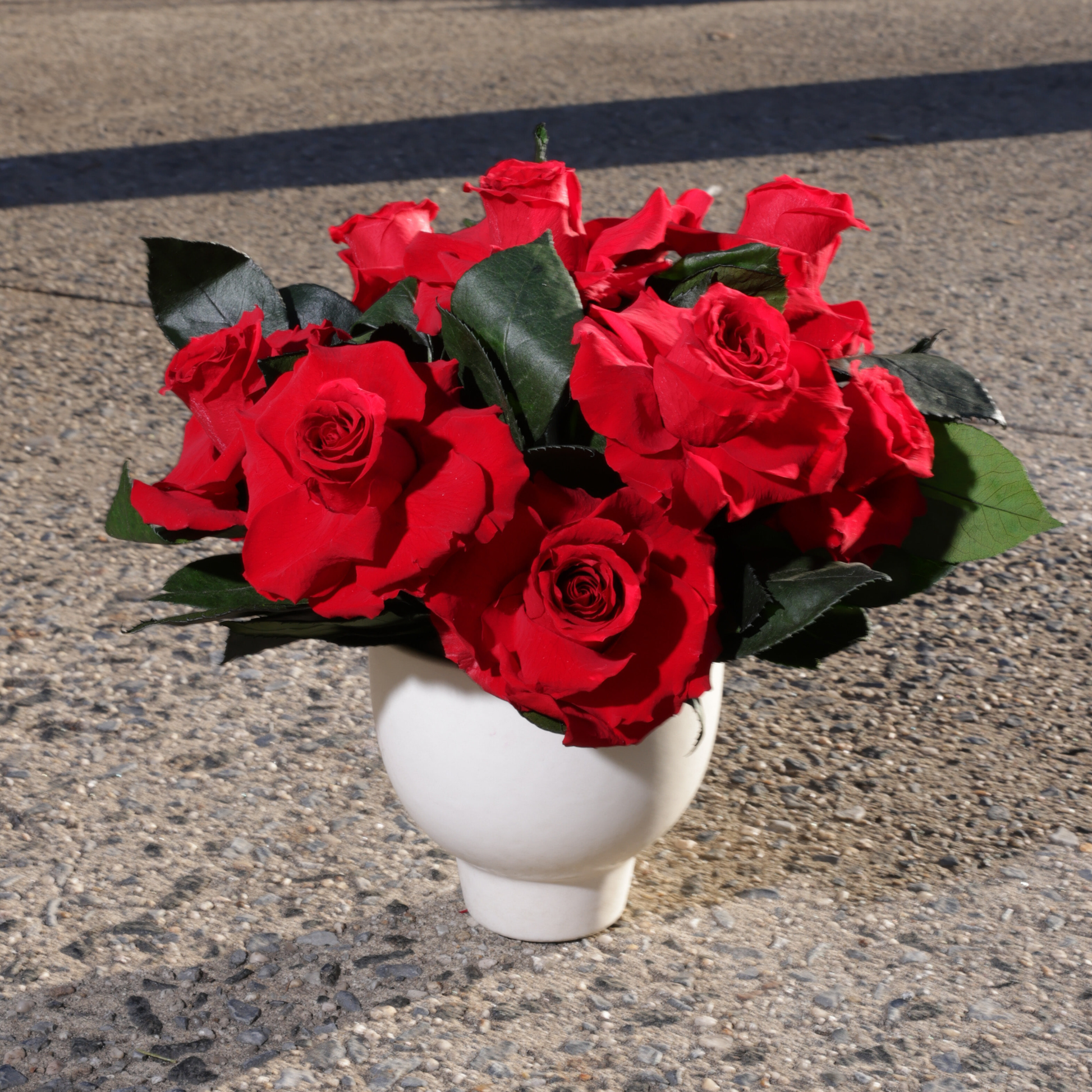 One dozen roses are meticulously hand-reflexed—a technique we've uniquely mastered as the only preserved florist to offer this type of depth and detail to each bloom. Lasts 1 to 3+ years.