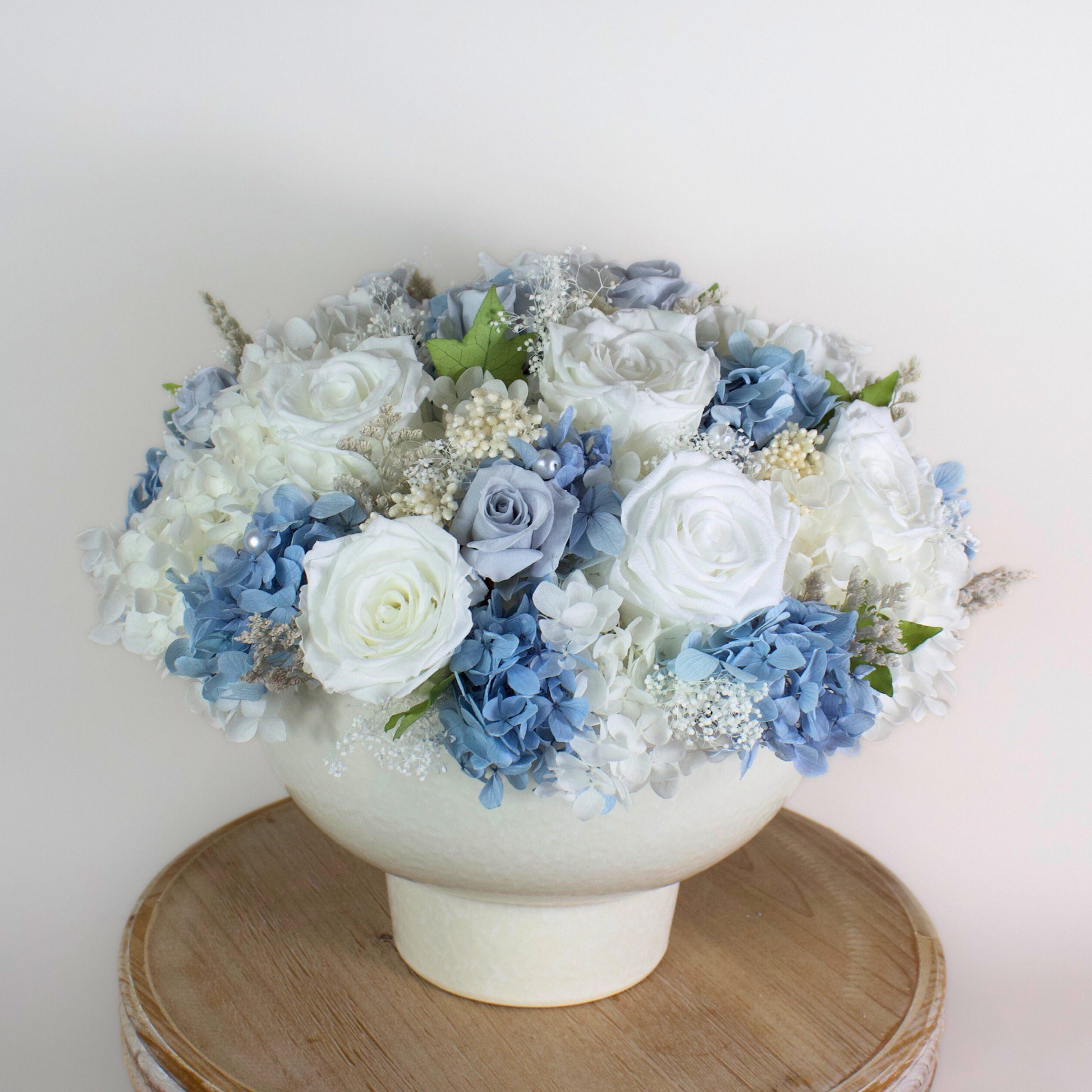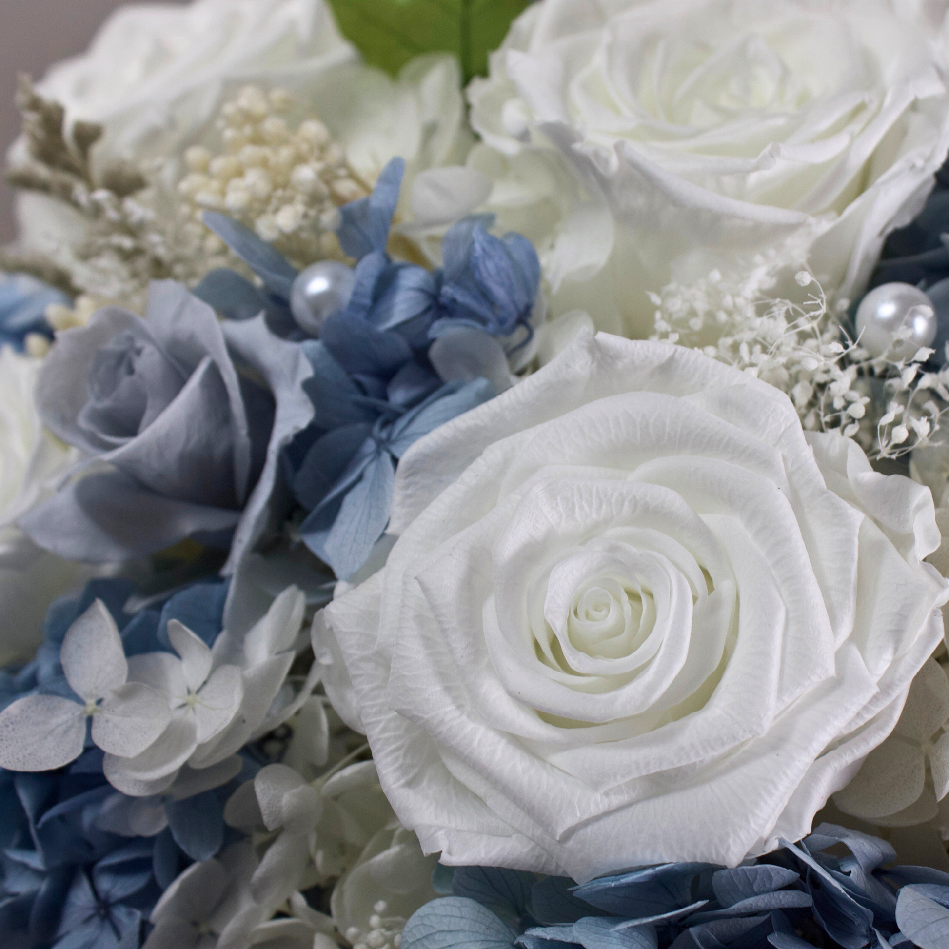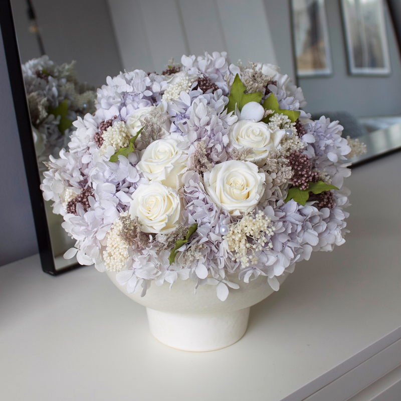 Inspired by wild coastal beauty, The Riviera bouquet embodies ultimate luxury and sophistication. This exquisite arrangement unites the allure of roses with the lush grandeur of hydrangeas into a timeless arrangement that will last for years to come.